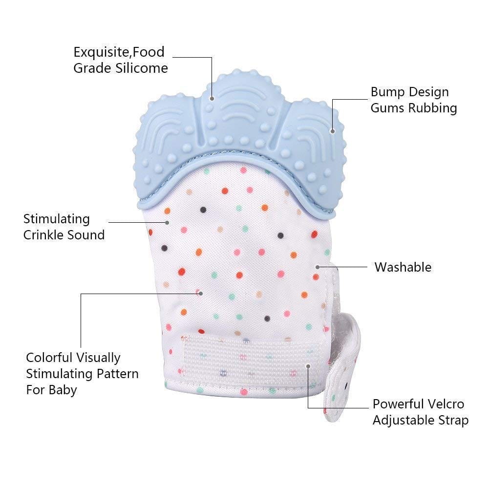 Engaging and Calming: With a colorful design and playful sounds, our gloves not only soothe teething discomfort but also keep your baby entertained.